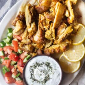 This Greek chicken gyro recipe is easy and exceptionally delicious. The marinade makes the chicken extra flavorful and juicy. Stuff it into a pita with fresh veggies and homemade tzatziki for a fabulous Greek deliciousness!