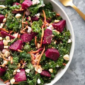 Ready in 20 minutes, this shaved brussels sprout salad is packed with amazing flavors thanks to pomegranate, feta and a zesty tahini dressing. It’s the perfect winter salad that you can make ahead of time and enjoy later.