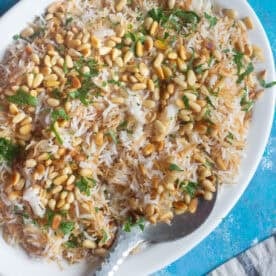 We have many easy rice recipes for you to enjoy and this Lebanese vermicelli rice is definitely one of our top favorites. Just like mujadara (lentil rice) and Turkish rice pilaf with orzo, this is a vegetarian rice recipe (with a vegan option) that’s packed with amazing flavors and is so easy to make. For a heartier option, try hashweh, a Middle Eastern spiced rice with ground beef that’s perfect as a main dish.