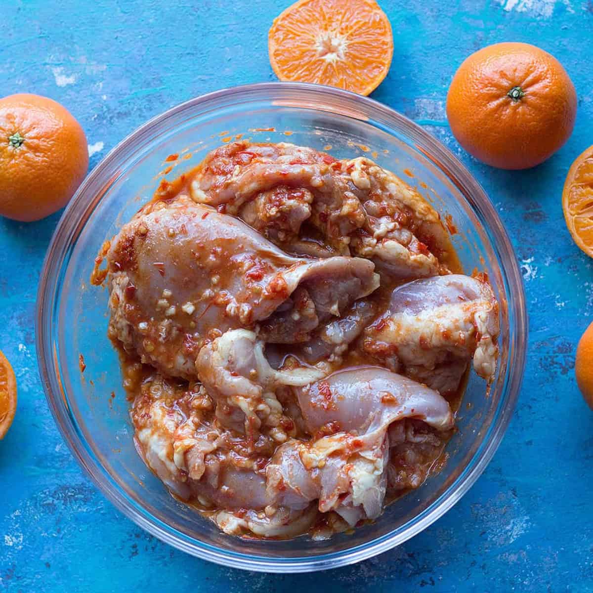 - Add in the chicken thighs and stir well to make sure all pieces are covered with the marinade.