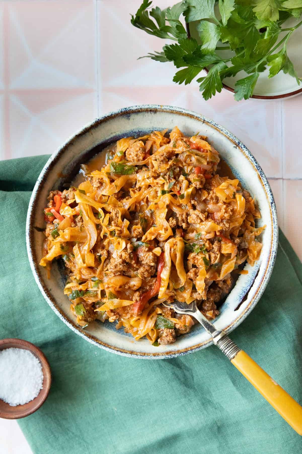Kapuska is a Turkish beef and cabbage stew made with ground beef, thinly sliced cabbage, red bell pepper, tomato paste, and Aleppo pepper. It is a one-pan weeknight dinner that comes together in about 30 minutes and is low carb as written, though it pairs beautifully with rice, bulgur pilaf or bread if you want something more filling.