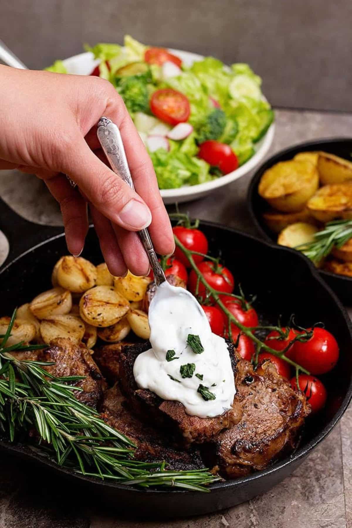 Steak with Garlic Herb Sauce
