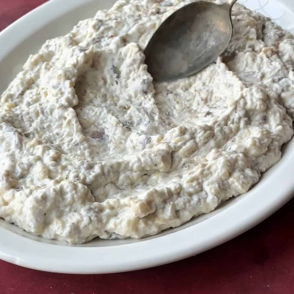 Spoon the eggplant and yogurt mixture onto a serving platter or individual plates.