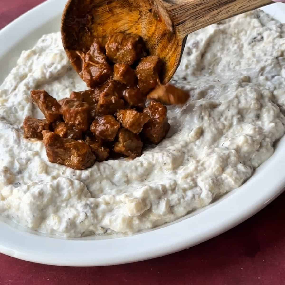 - I always plate the yogurt and eggplant first, then spoon the warm meat on top right before serving. It keeps everything fresh and flavorful.