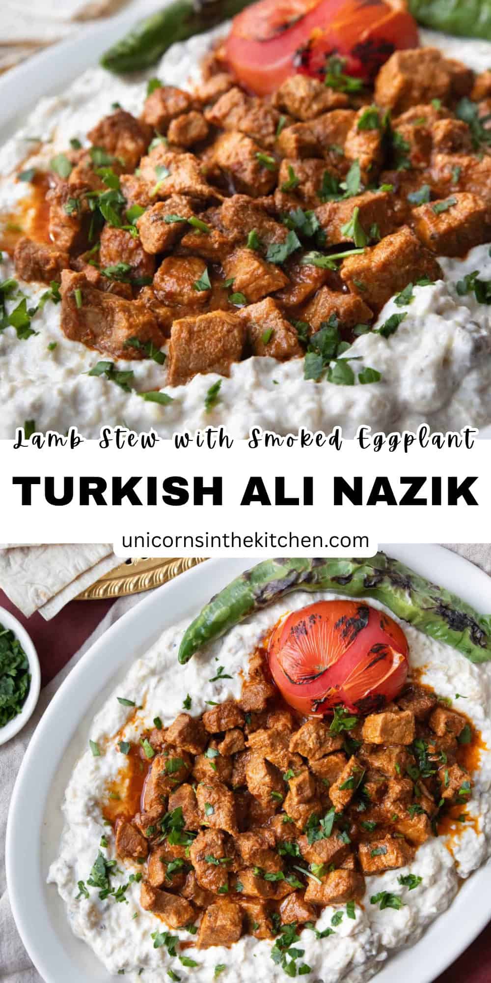 Ali Nazik is a classic Turkish dish from Gaziantep. Tender lamb stew is served over smoky eggplant and yogurt, and it’s usually enjoyed with bread or rice. Follow my recipe to recreate this beloved Turkish dish at home, it will transport you to the streets and restaurants of Istanbul.