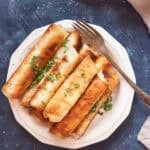 Fold the outer corners over the filling and roll the borek. Dip your index finger in water and wet the edges again and roll tightly. Set aside and continue with the remaining yufka and filling.